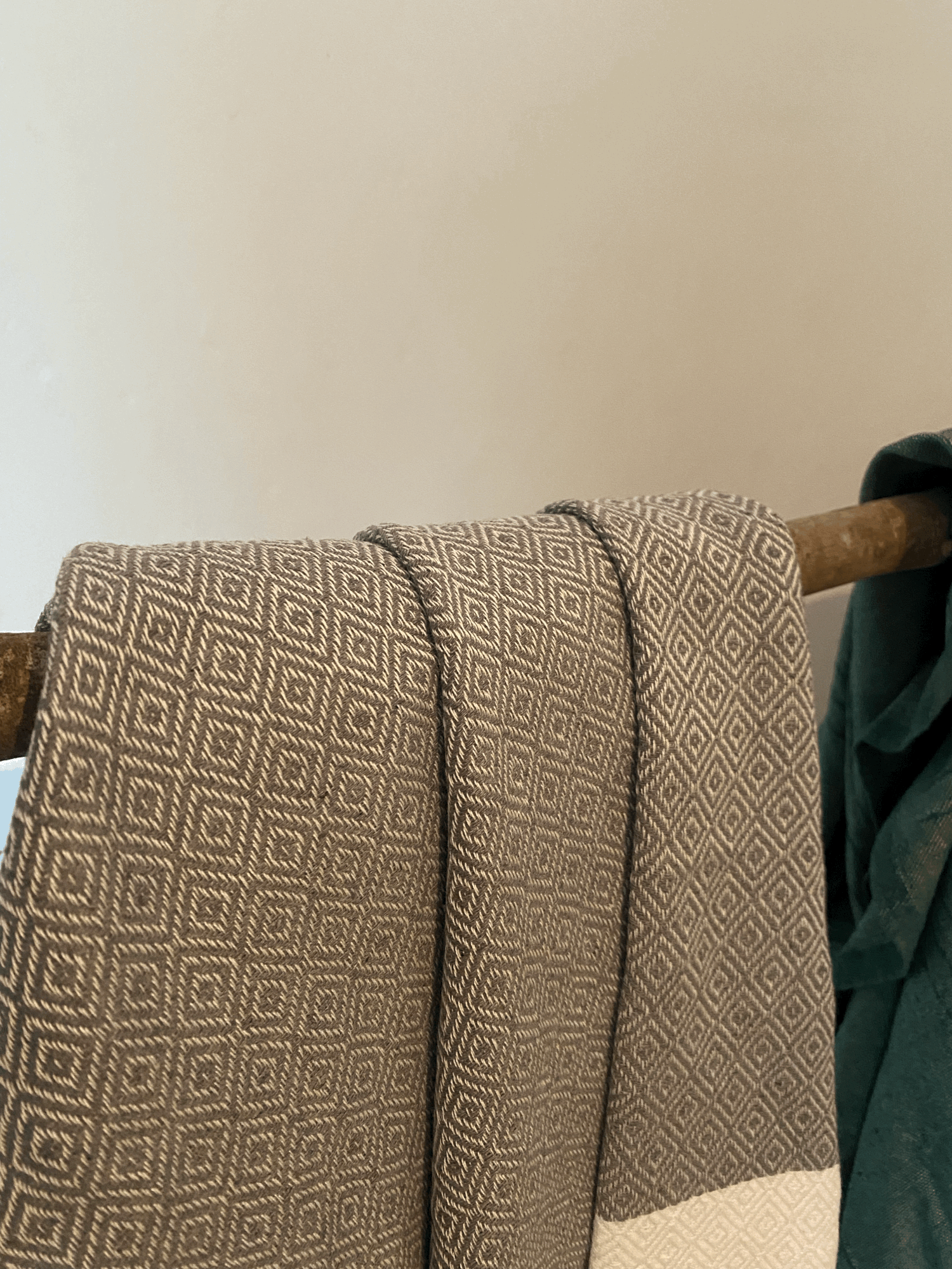 The throw is 100% cotton light weight throw for any use, whether its as a living room throw, a bed throw for added texture or a table cloth this throw is perfect!
